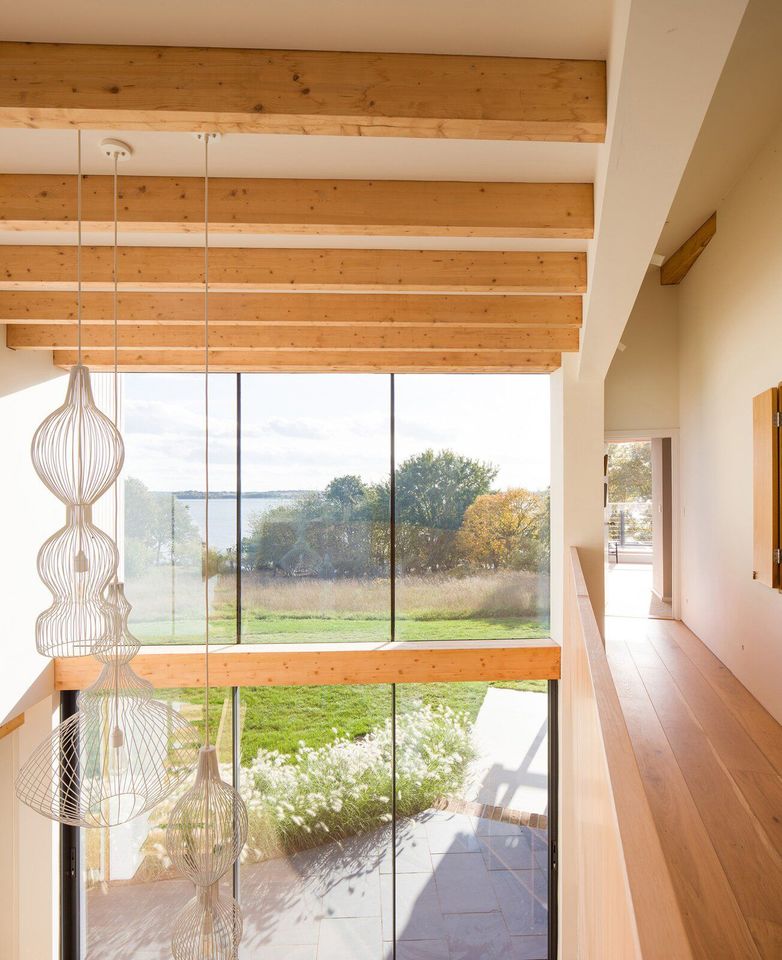 Spiers wanted "to be honest about the structure" and exposed the timber frame and glulam beams throughout the house.